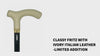 Indulge in luxurious walking with our exclusive Classy Cane, boasting a Ivory Fritz Italian Leather Handle. The cane is made in Italy. This functional and elegant cane enhances your strolls with its secure grip. Gold Collar.