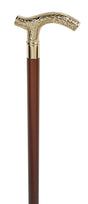 This elegant and exclusive walking cane features a walnut-finished maple shaft and an embossed solid brass fritz style handle. The fritz handle provides reliable support and can be easily hooked onto doorknobs, cane holders, and tables. With its sophisticated design, including a brass ring, this high-quality cane is the perfect choice for men seeking both comfort and style. Measuring approximately 36 inches in length, it is a durable and stylish walking companion for years to come.