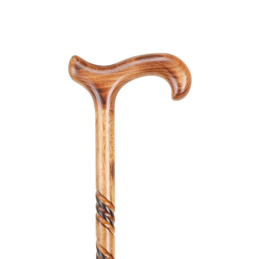 We recommend the Spiral Wooden Shaft Cane to all folks who have been searching for a minimalistically designed walking stick that has something special to offer. People shopping for aesthetically progressive walking canes will adore the Spiral Cane with Gold Collar. For starters, the solid wood shaft wears a series of designer spirals. The Gents Derby Cane has a traditional layout, using a sleek design, further blended with a spiral theme on the shaft. The entire shaft is covered in varying hues of brown that underlines the use of pure hardwood. The Gold Collar Derby Cane is the perfect selection when you want vintage style canes without spending too much. Imported from Scotland, the derby cane is easy to grip while the solid wood construction ensures it can be used to provide support on a rainy day or when walking on uneven surfaces. The Gold Collar Walking Cane comes with a ferrule attached to the bottom to further improve the grip.
