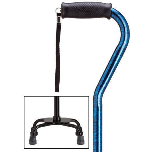 Crafted with sophistication and style, the Blue Fashion Granite Quad Small Base walking cane is the most sought-after model in the walking stick series. As its centerpiece, the cane features a center balance quartz handle and a nylon security nut, guaranteeing unmatched stability. What's more, with a base measurement of 5x8 inches and a range of adjustable heights from 30-39 inches, this beautifully designed four-pronged cane also boasts exceptional functionality that supports body weight and bolsters walking balance. Highly regarded for its exquisite design, this ear-catching walking cane is already turning heads in the market.