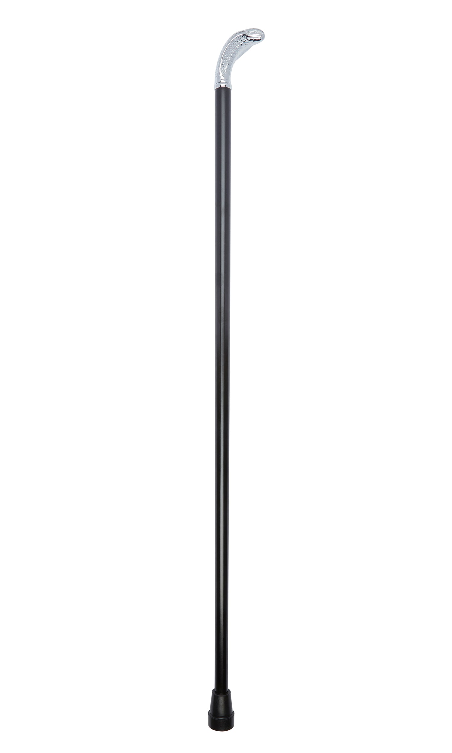 Meticulously designed, this distinguished walking cane showcases a brilliant silver-plated chrome cobra handle mounted on a sleek black beech wood shaft. The refined aesthetic is enhanced by a premium rubber ferrule ensuring longevity. Measuring a stately 91cm (36"), this elegant mobility aid harmonizes classic sophistication with functional support. Crafted with precision and imported from Scotland.