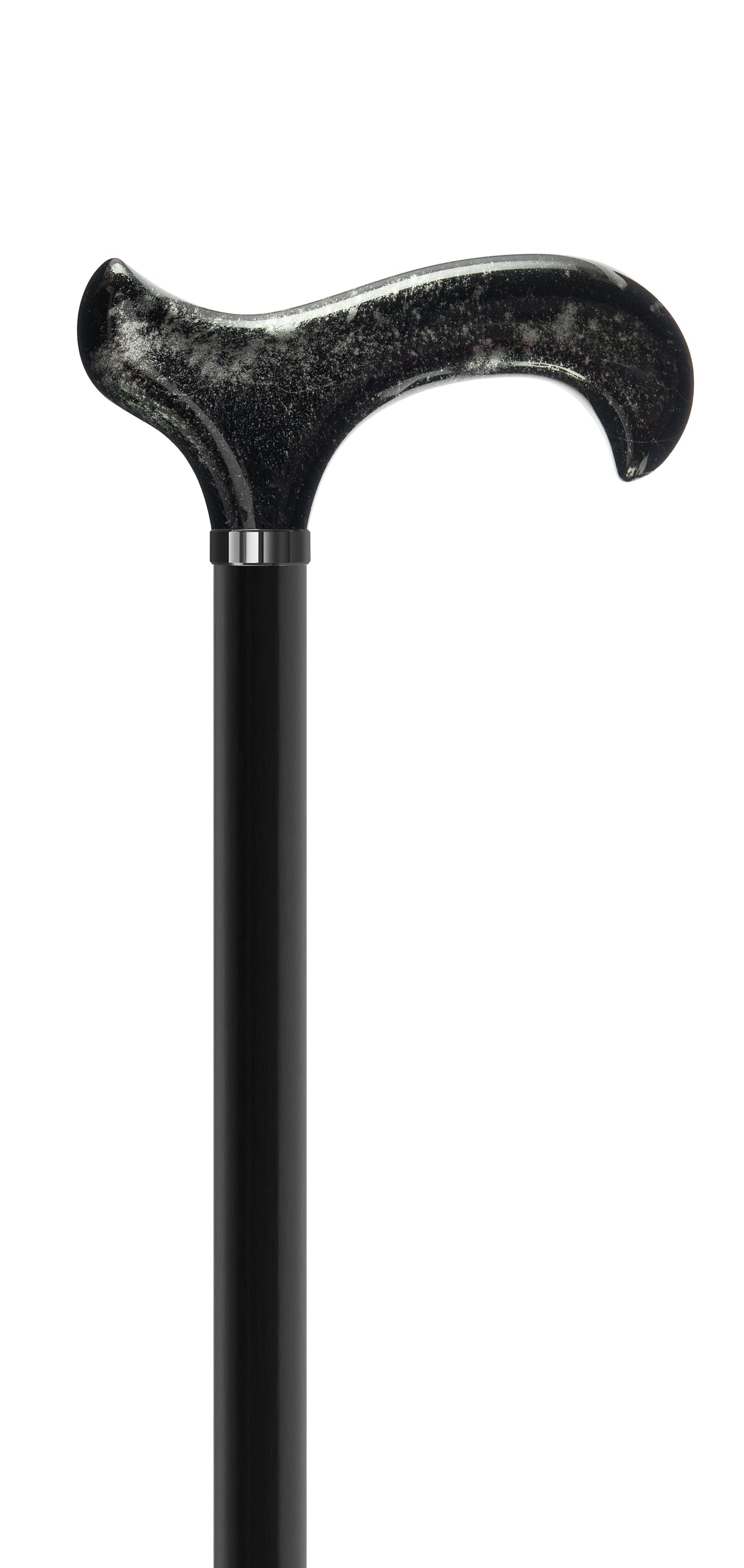 Discover the incredible Tall Adjustable Classy Cane in Black-Silver - a prestigious addition to our premium collection, expertly crafted in Italy. With its sleek black aluminum with silver collar construction and elegant cellulose acetate handle, this orthopedic walking stick offers customizable height options. Simply twist the locking pin and secure fixing ring to personalize the cane's height to your liking. The bottom features a rubber tip for increased stability on various surfaces. Perfect for taller individuals, this cane can reach heights from 29 inches to 39 inches and hold up to 220 pounds. Enhance your walking experience with this exquisite and practical cane. Tip size 3/4" or 19mm. Made in Italy. Each cane in this color has a silver streak of silver in it.