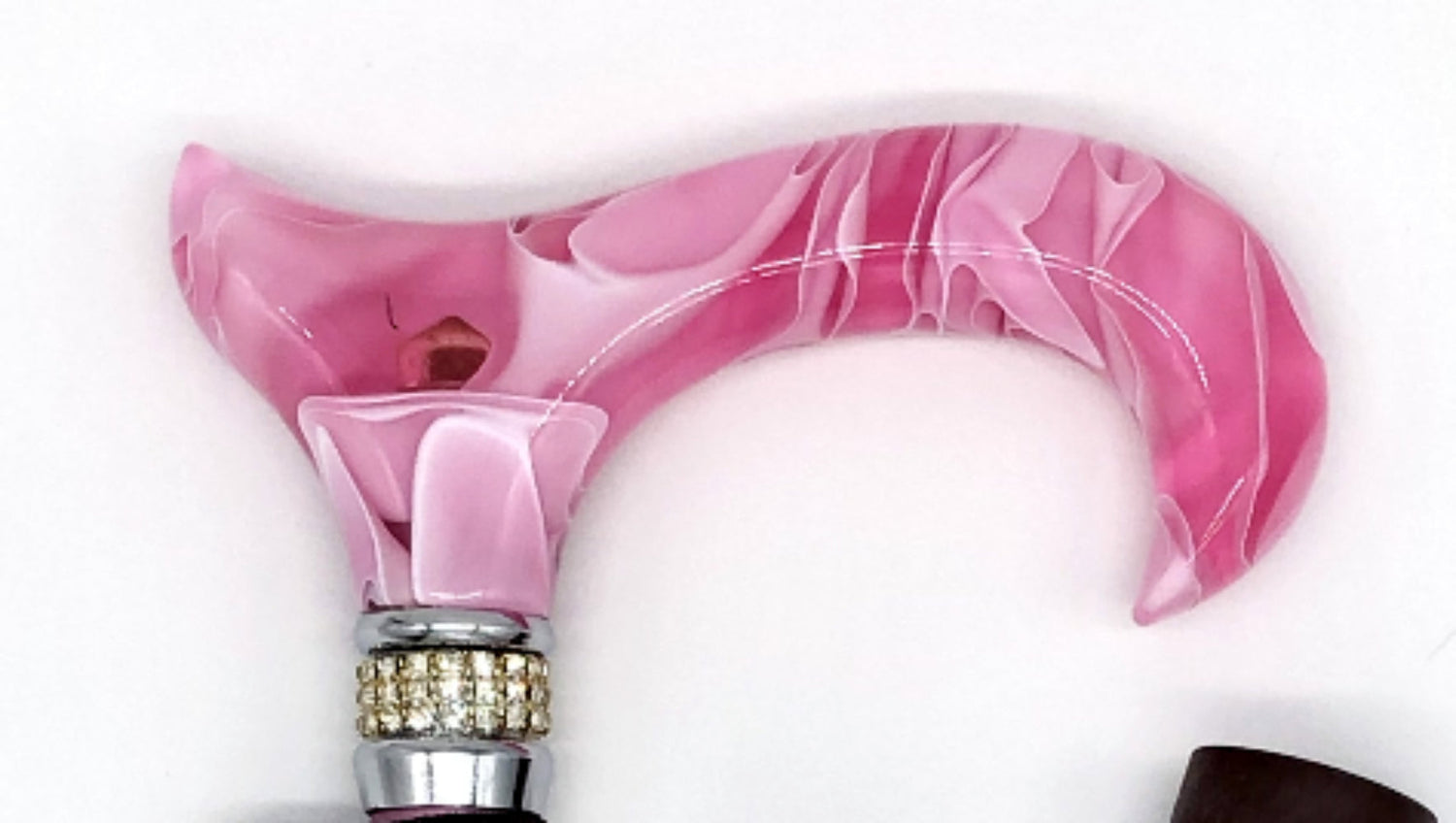 Searching for a walking aid that radiates your style without being in-your-face? Try the Classy Walking Canes Folding Pink Diamond and Pearls. Fusing mystery and sophistication, this sleek and fashionable aid breaks the market's typical mold. The elegant handle with the striking pearl swirl and adjustable pink shaft is connected with a sparkling rhinestone collar, making the cane a gorgeous addition to any event, casual or formal. Its aluminum shaft cane adjusts from 33 to 37 inches and supports up to 180 pounds, and comes with a wrist strap for easy carrying.