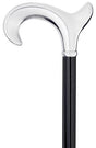 From its debut, the Men's Chrome Ergonomic Derby Handle has been a popular choice, often outselling other walking canes. The cane is a noteworthy example of this timeless design, crafted with an ergonomic chrome-plated handle set atop a luxurious black hardwood shaft and chrome accent ring. With its extra-wide handle, this cane offers unmatched comfort and a sophisticated air. 36" Standard shaft. A rubber tip #8-0398-08 completes the ensemble, providing extra traction on wet or slippery terrain.