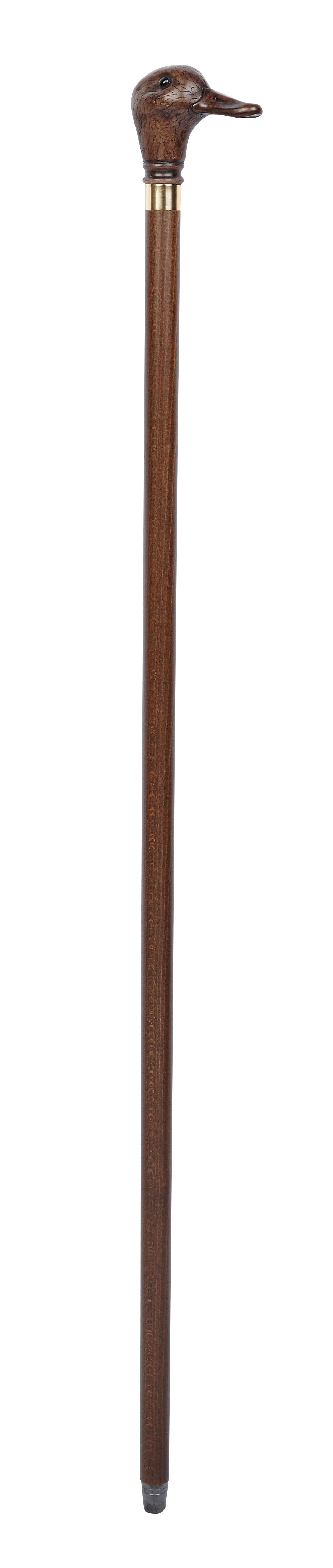 Impeccably designed, this walking stick features a meticulously moulded duck head handle in wood-effect resin atop a premium maple shaft. Adorned with distinguished brass collar embellishments and finished with a resilient metal ferrule, it stands at a stately 36" (91cm). Each piece reflects the exceptional artistry of Scotland's finest craftsmen. This refined accessory serves as a statement of discerning taste rather than medical necessity. Directly sourced from Scotland, it embodies quintessential elegance and extraordinary attention to detail.