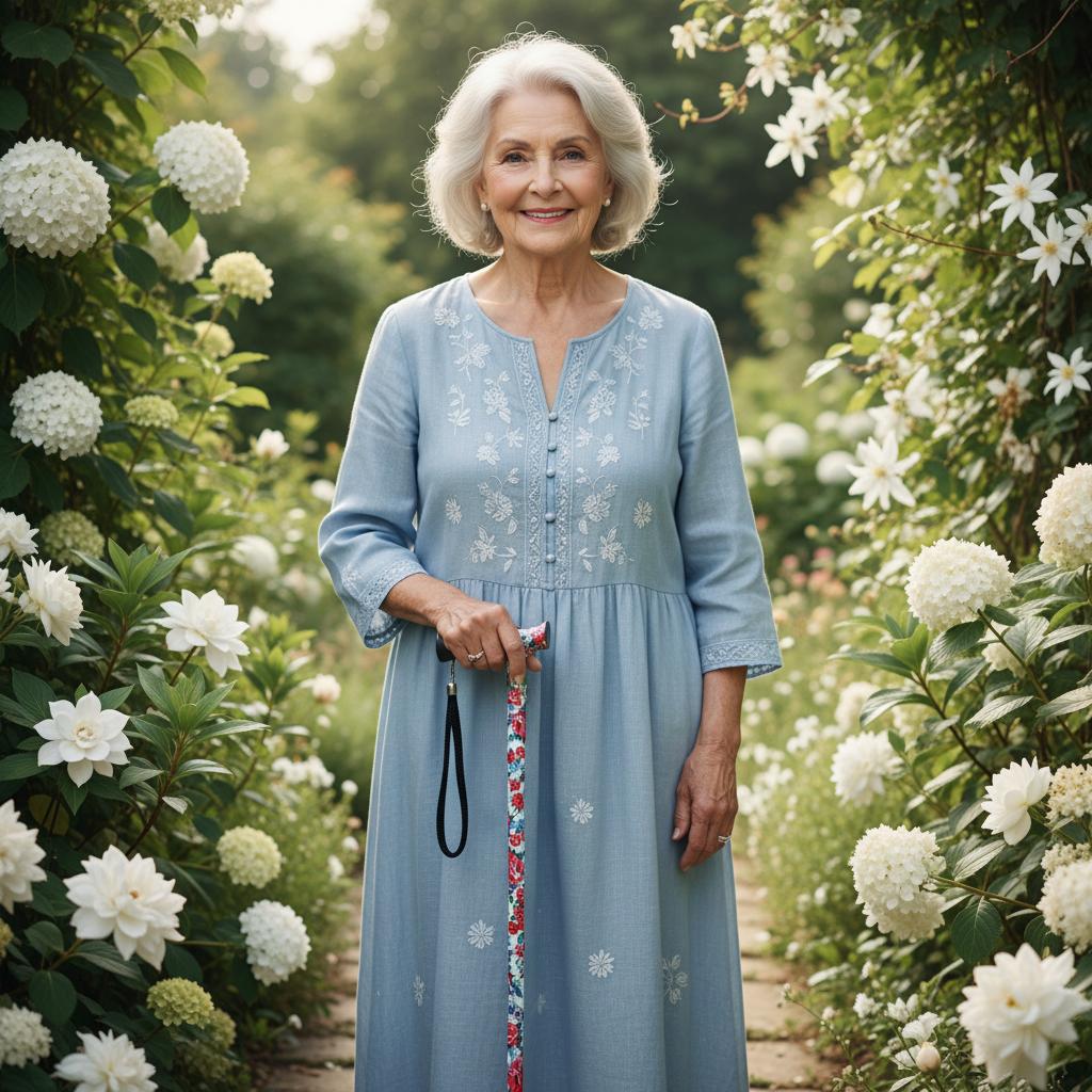 Petite Ladies Folding Adjustable White Floral Design