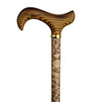 Snakeskin Derby walking cane is an exciting cane that features a snakeskin finish maple shaft. This walking cane is a very good addition to your fashionable collection of walking canes. It can also be your trendy everyday companion that would still look good after many years of usage. It has a scorched derby handle that offers comfort and excellent support to any cane user. Elegance and style can be seen through the addition of the brass band between the handle and shaft. This comfortable walking cane ends with rubber tip # 8-2700-08 and has an approximate measurement of 5 inches x 1 inch x 35 inches. The snakeskin walking cane with scorched derby is a product of Harvy Canes.