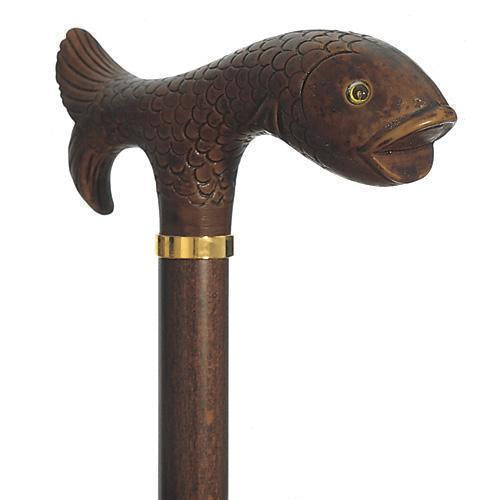 Just when you thought that animal-themed canes were getting a bit predictable, the Trout Walking Cane makes a strong statement with its unusually designed handle. Primarily meant to serve as a sturdy walking aid, this cane is value-for-money as a part of your wardrobe ensemble too. It features a poly resin handle depicting an eager troutthe visual highlight. The construction invokes confidence with its premium quality hardwood traits. The Trout Cane has a rubber tip for better grip on wet surfaces too. The cane is finished in a beautiful hue of walnut shade, accentuated by the slightly pompous golden collar. A product from the cane-making terrains of Italy, the Trout Walking Cane measures 36 inches. You can customize the length to suit your requirement.